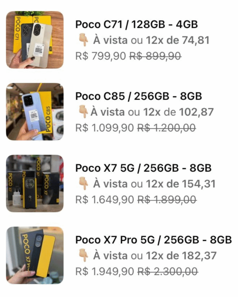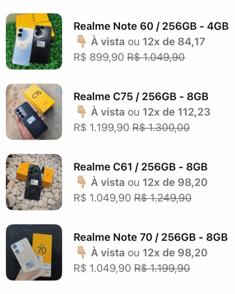 Trabalhamos com marcas originais com Xiaomi, Realme e Infinix.